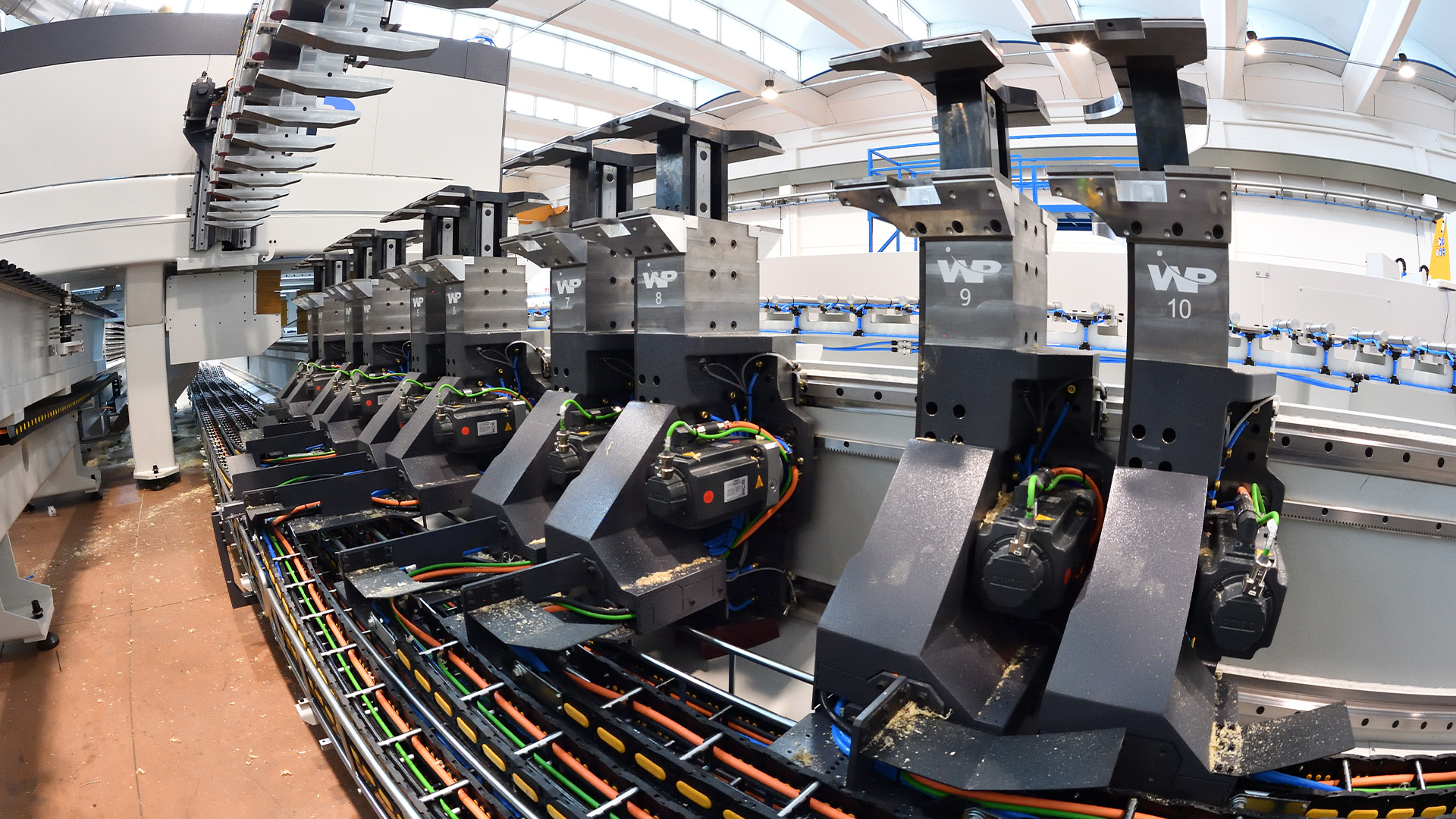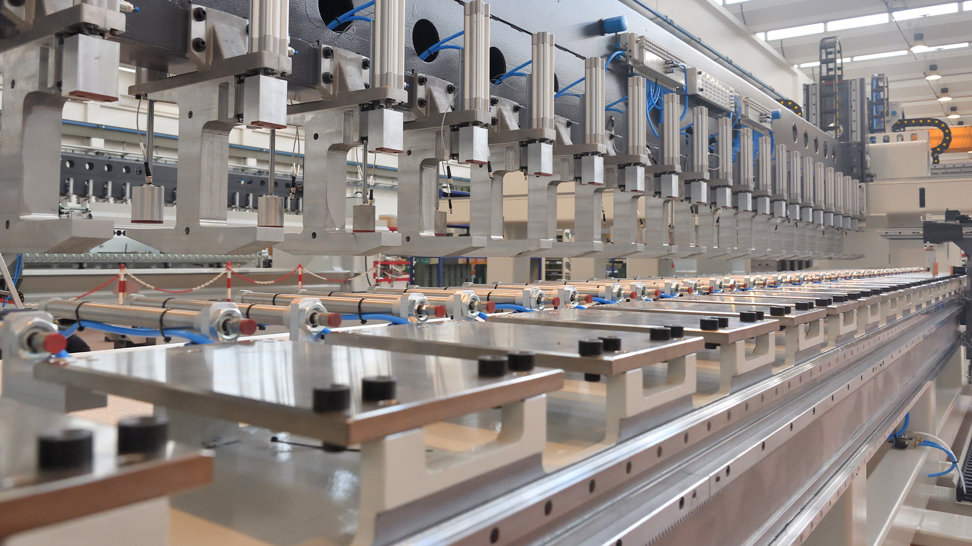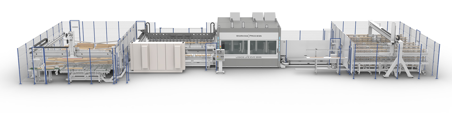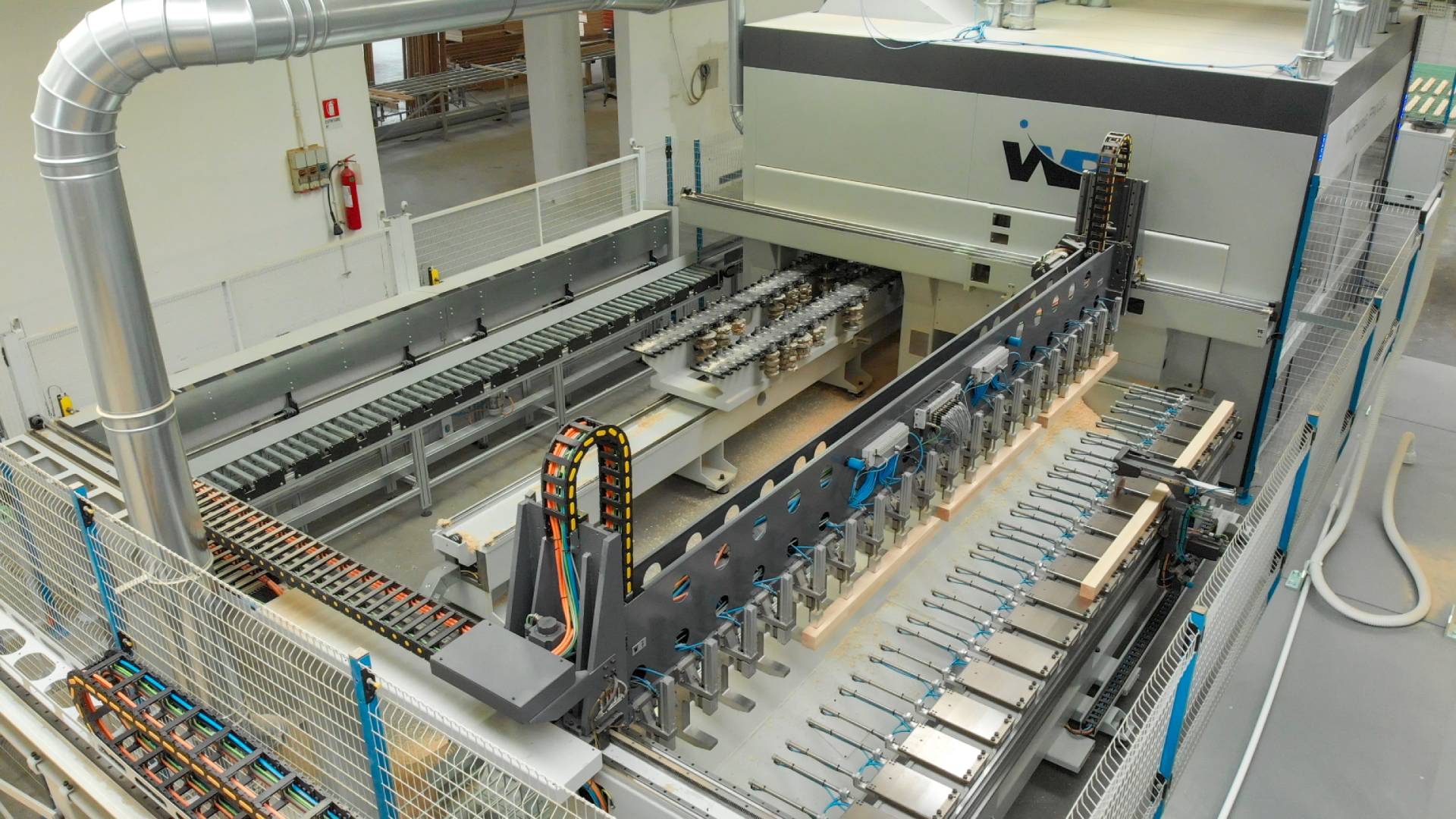 Centro di lavoro compatto completamente automatico per la produzione di finestre e porte in legno di qualsiasi forma e dimensione. È dotato di carico e scarico automatici, manipolatore a doppia presa, struttura monoblocco con 2 o 3 mandrini per la fresatura. Dispone di 8 pinze portapezzo completamente indipendenti e 128 posti utensile che garantiscono la massima flessibilità e produttività. È integrabile con i magazzini intelligenti per il carico e lo scarico.
